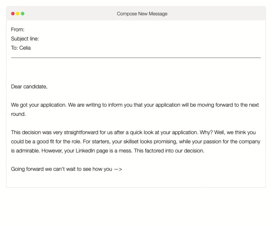 The Magic Feedback Machine is a web app I built that lets people write funny (or not so funny) emails, using the format of a company writing an email to a job applicant.